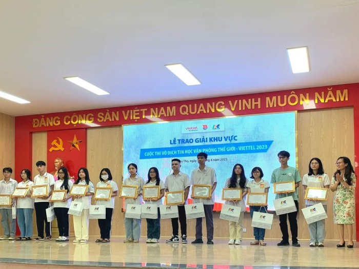 Tại buổi Lễ, thay mặt BTC Đ/c Cao Thu Bình – Giám đốc Phát triển Dự án Khu vực miền Bắc – Tổ chức Giáo dục IIG Việt Nam và Đ/c Đoàn Thị Ngọc Mai – Trưởng ban TNN Trường học Tỉnh đoàn Phú Thọ đã trao tặng 96 giải Khu vực Trung du và miền núi phía Bắc cho các cá nhân. Phú Thọ có 3 trường THPT (THPT Chuyên Hùng Vương, THPT Chất lượng cao Văn Lang Văn Lang, THPC Chất lượng cao Văn Lang Hùng Vương) có học sinh đạt giải. Trong đó, 4 học sinh trường THPT Chất lượng cao Văn Lang Văn Lang giành giải KK Vô địch tin học văn phòng thế giới năm 2023. Giải thưởng thuộc về các em: