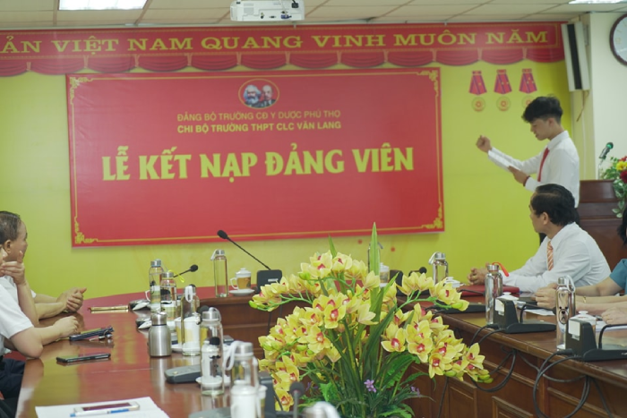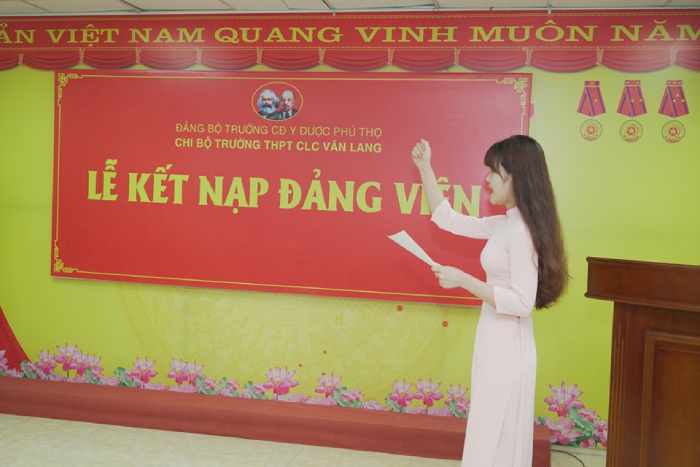 Nhân kỷ niệm 134 năm ngày sinh Chủ tịch Hồ Chí Minh (19/5/1890 -19/5/2024), chiều nay 23/5/2024, Chi Bộ trường THPT Chất lượng cao Văn Lang đã tổ chức kết nạp Đảng cho 01 học sinh lớp 12 và cô giáo Bùi Thị Bích Ngọc dạy môn Ngữ Văn của trường.