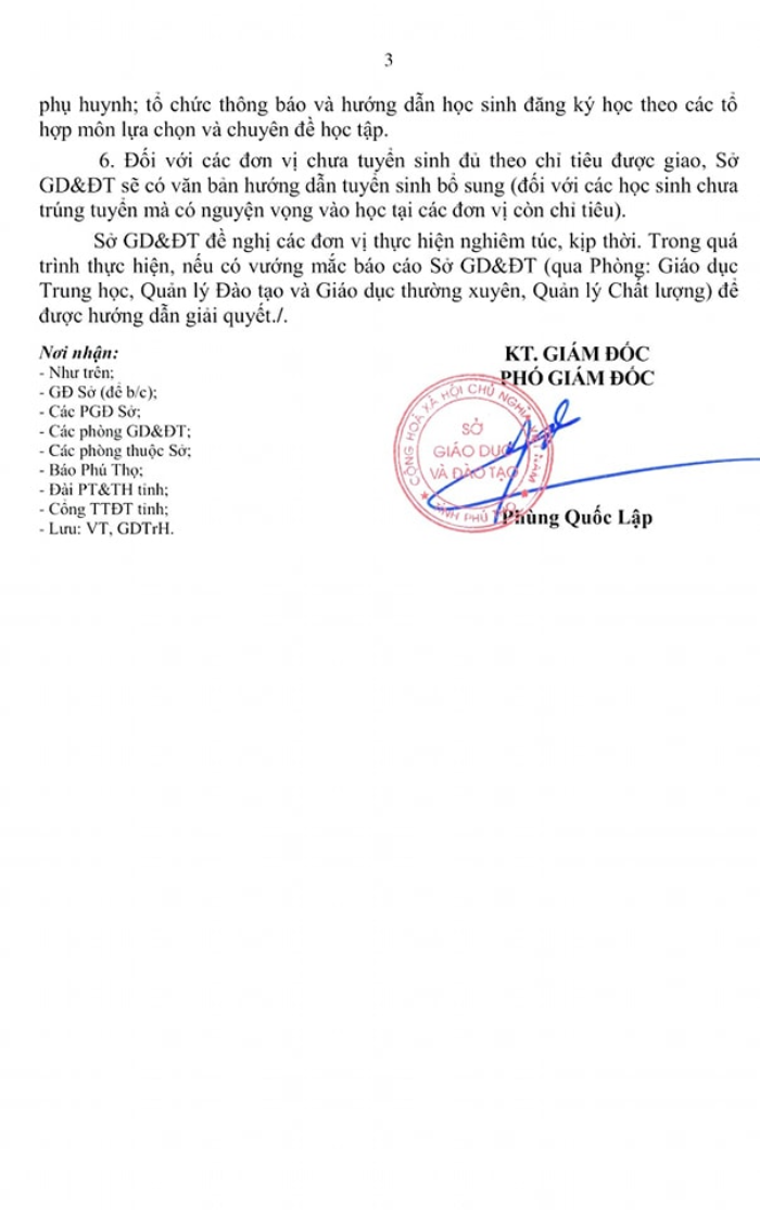 Chiều ngày 26/6/2024, Sở GD&ĐT đã chính thức công bố Điểm trúng tuyển lớp 10 THPT năm học 2024 – 2025 tại văn bản số 869/SGD&ĐT-GDTrH của Sở GD&ĐT Phú Thọ.