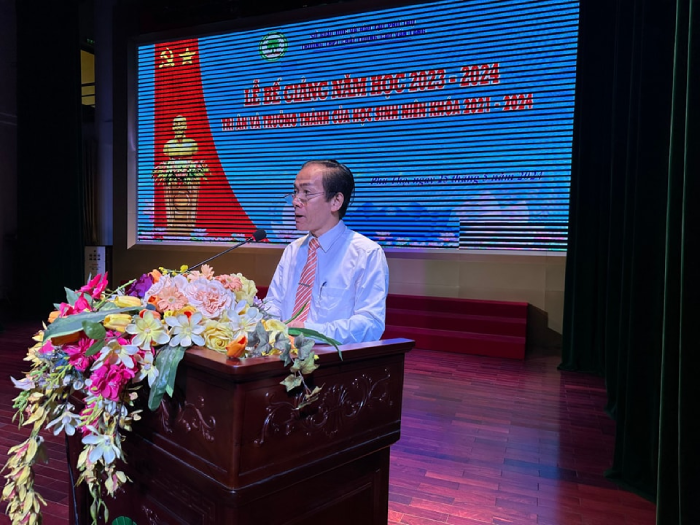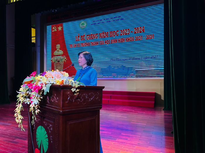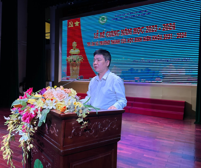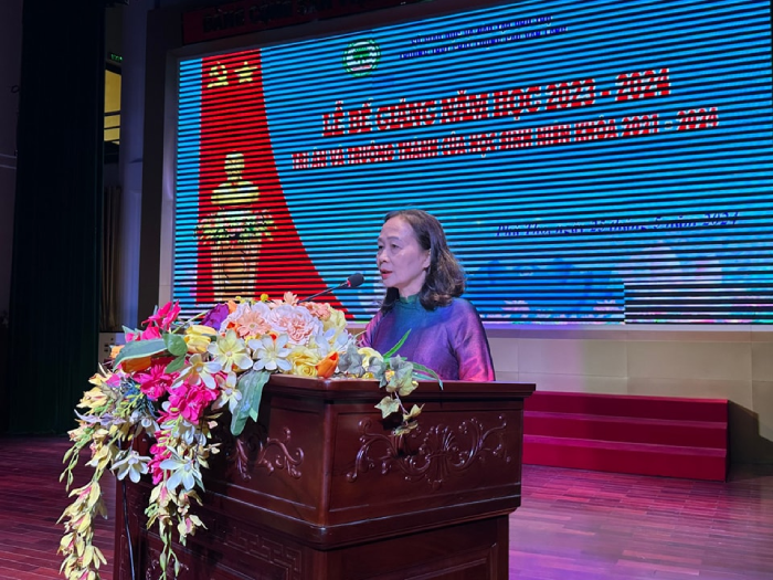 Phát biểu tại buổi lễ Tổng kết, Cô giáo Chu Thị Hảo – Phó Hiệu trưởng thay mặt lãnh đạo nhà trường đã thông qua Báo cáo tổng kết năm học 2023 – 2024, biểu dương, ghi nhận sự nỗ lực, tận tâm của Thầy và sự cố gắng của trò trong năm học vừa qua.
