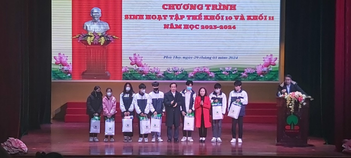 Thầy giáo Cù Huy Quảng Hiệu trưởng đã thay mặt Đảng ủy Trường Cao đẳng Y dược Phú Thọ, Chi bộ trường THPT Chất lượng cao Văn Lang trao tặng 14 suất quà, mỗi suất trị giá 500 ngàn đồng cho các em học sinh của trường có hoàn cảnh khó khăn, vươn lên trong học tập.