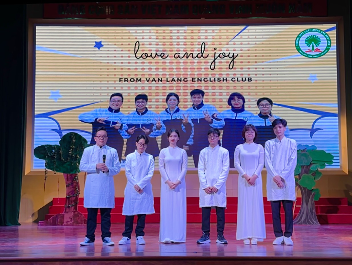 Mở đầu chương trình là phần hùng biện do các bạn trong Câu lạc bộ tiếng Anh của trường thể hiện. Dưới sự hướng dẫn và tổ chức của cô Trần Mai Phương, bạn Nguyễn Thu Trà đã thể hiện đầy hấp dẫn chủ đề “Do you think self – study is an important facfor that helps students get success in their study? Why?” và tự tin trả lời câu hỏi của các thầy cô giáo. Nối tiếp các bạn trong Câu lạc bộ tiếng Anh đã chia sẻ Dự án “Vanlang travel” theo hình thức sân khấu hóa. Bạn nào cũng vào vai rất khéo, chủ động, khiến các bạn cổ vũ tưởng như mình là người chứng kiến, người tham gia dự án.