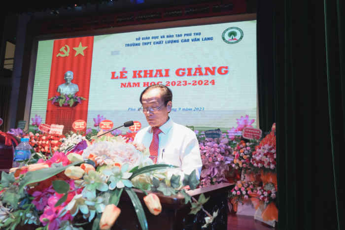 Thay mặt lãnh đạo trường, Th.S Cù Huy Quảng, Bí thư CB, HT Nhà trường đã đọc thư của Chủ tịch nước Võ Văn Thưởng gửi ngành Giáo dục nhân dịp khai giảng năm học 2023-2024 và đánh trống khai trường.