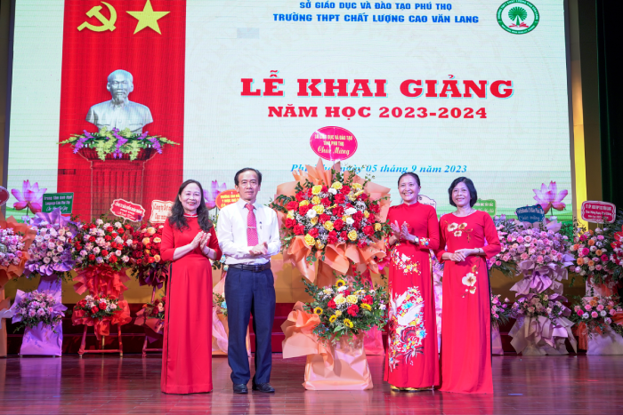 Dự lễ Khai giảng, Bà Đặng Thị Thu Thành – Phó Chánh Văn phòng Sở Giáo dục và Đào Tạo Phú Thọ thừa ủy quyền của Lãnh đạo Ngành đã trao Bằng khen của Bộ Giáo dục và Đào tạo, Danh hiệu thi đua “Tập thể Lao động xuất sắc” cho trường THPT Chất lượng cao Văn Lang, 01cá nhân được tặng Bằng khen của UBND tỉnh, 02 cá nhân được tặng Giấy khen của Giám đốc Sở Giáo dục và Đào tạo Phú Thọ. Lãnh đạo Nhà trường cũng đã trao giấy Giấy khen cho 03 tập thể, Giấy chứng nhận Danh hiệu CSTĐCS cho 06 cá nhân, giấy khen 07 cá nhân có thành tích trong năm học 2022-2023 và phong trào thi đua đổi mới sáng tạo trong công tác quản lý, dạy và học.