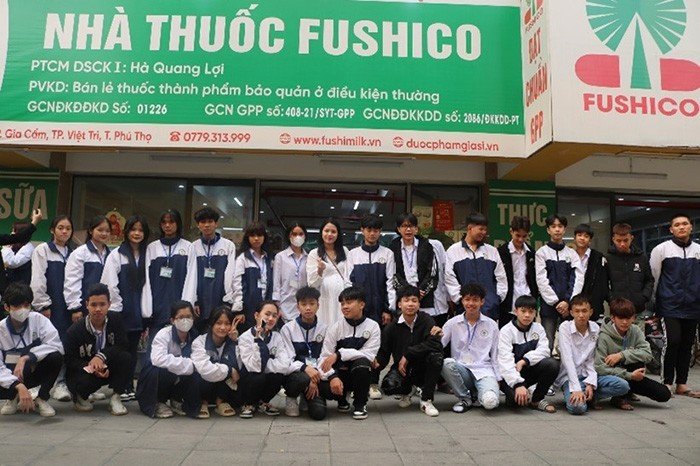 Buổi HĐTN có sự tham gia của BGH, Đoàn Thanh niên, GVCN, học sinh khối 10. Tại buổi trải nghiệm, HS được tham quan phòng điều dưỡng chung và phòng chăm sóc da và phòng thí nghiệm trung tâm, tham quan phòng thực hành bào chế và xưởng pilot, tham quan phòng tư vấn đứng quầy thuốc, Nhà thuốc Fushico.
